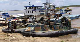 La Marina de Guerra del Perú (MGP) inició el despliegue de los dos hovercraft o aerodeslizadores del modelo 2000TD encargados a principios de año al fabricante británico GRIFFON HOVER WORKS LTD. Aunque las naves podrán ser usadas por la MGP para tareas de patrullaje y otras operaciones militares a lo largo del rio Amazonas y sus márgenes, su aplicación principal inmediata será en la zona del Valle de los ríos Apurímac y Ene (VRAE) en la selva alta. Las fuerzas armadas y los servicios de seguridad peruanos combaten allí a los remanentes del grupo guerrillero Sendero Luminoso, que están aliados a bandas dedicadas a la producción y tráfico de droga. Los 2000TD fueron presentados el pasado 25 de Octubre, en la ciudad de Pucallpa, a un grupo de jefes de la MGP y otras fuerzas encabezado por el Vicealmirante Carlos Chanduvi , |