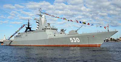 A fines de Marzo pasado el astillero SEVERNAYA VERF de San Petersburgo lanzó al agua la fragata furtiva SOOBRAZITELNY, segunda unidad del tipo Proyecto 20380 construida para la marina rusa. La nueva nave será ahora completada y probada para que entre en servicio a fines del 2011. La primera corbeta de la serie, la STEREGUSCHY, está en servicio con la flota del Báltico desde Febrero del 2008. Las corbetas Proyecto 20380, concebidas como naves multipropósito para operaciones en aguas del litoral, son las primeras naves de la marina rusa diseñadas con características furtivas, incluyendo un casco cuyas formas responden a esa exigencia y superestructuras de material compuesto. Desplazan 2.000 toneladas, pueden alcanzar una velocidad máxima de 27 nudos y tienen una autonomía de 4.000 millas náuticas. Están armadas con dos lanzadores cuádruples para misiles |